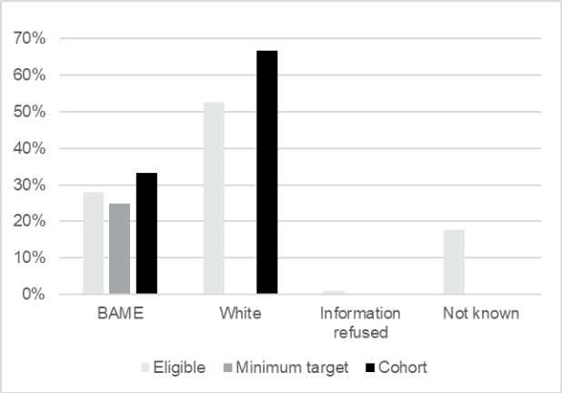 We met our target of a minimum of 25% BAME representation within the cohort.